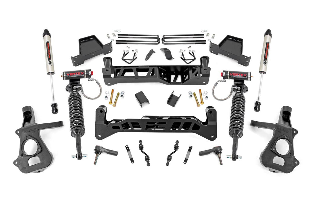 Bold Lift, Balanced Stance: Transform your 2WD Chevy/GMC 1500 with Rough Country's 7-Inch Lift Kit, delivering a head-turning, aggressive profile while maintaining OEM compatibility. This system lets you run 35-inch tires on factory 18 or 20-inch wheels-no extra modifications needed. The result? A leveled, front-to-rear stance that boosts both curb appeal and on-road confidence.Engineered for Extreme Terrain: Conquer off-road challenges with the high-clearance crossmember design, built to maximize ground clearance and improve obstacle navigation. Whether you're blazing trails or navigating uneven work sites, this lift kit enhances performance where it matters most. The fully configurable design pairs perfectly with any shock or strut setup-from Rough Country's N3 series to premium Vertex reservoir systems-so you can customize your ride quality to your preference.Precision Fit, Superior Strength: Crafted from 100% laser-cut materials with advanced CAD engineering, this kit ensures a flawless fit and reliable installation. The fabricated rear blocks are tougher than cast alternatives, designed for long-lasting durability and structural integrity. Plus, Rough Country's exclusive anti-axle wrap technology helps preserve your trucks factory ride comfort while eliminating the axle wrap commonly seen with standard lift blocks.Complete Kit, Confident Install: This all-in-one solution includes everything you need for a seamless install-complete hardware, detailed instructions, and expert design. And with Rough Country's Limited Lifetime Warranty, your investment is protected every mile of the way. Elevate your trucks performance and style with confidence-lift it right with Rough Country.