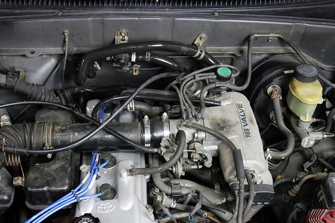 HPS red high temp 3-ply reinforced silicone heater hose kit (part number 57-1746H-RED) replaces Toyota 95-04 Tacoma 2.4L & 2.7L 4 Cylinder stock OEM rubber heater coolant hoses (part numbers: 87245-04150, 87245-04160 & 87245-04110) with premium grade high-heat resistance material which meets or exceeds OE specifications (Maximum temperature rating: 350F). Compared to the local auto parts store universal hoses, HPS silicone heater hose kit has all the correct bends and curves for a perfect fitment. HPS silicone coolant hose kit includes 100% stainless steel non-perforated embossed hose clamps for easy installation, which do not cut through the silicone hoses. HPS silicone hoses can prevent and fix the coolant leaking and engine over heating problem caused by cracked, damaged or collapsed OEM rubber coolant hoses. Excellent for extreme ambient and radiant temperature conditions, HPS silicone hoses can withstand the harsh high temperature and high pressure operating conditions of the engine yet still maintaining peak efficiency during daily driving or racing competition. HPS silicone hose kit is backed by HPS Performance Products limited lifetime warranty.
