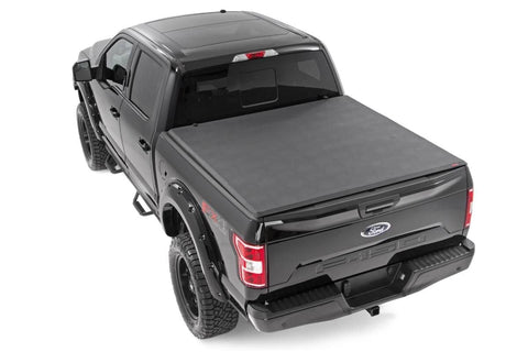 Protect your gear and streamline your ride with Rough Country's Tri-Fold Vinyl Tonneau Cover!
