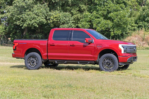 Level Your Ride! If you're looking for a way to lift your 2022 Ford Lightning, Rough Country has the perfect solution with their 3-in Front Lift Kit. Our 3-inch kit will lift and level the front and rear of your truck, eliminating the original factory rake and increasing ground clearance. Retain your factory wheels using our 0.25-inch wheel spacers with this kit, or run those 33-inch tires you'vealways wanted for a more aggressive look! And if you ever need to return it to stock, no problem! Just remove the kit, and you're good to go.