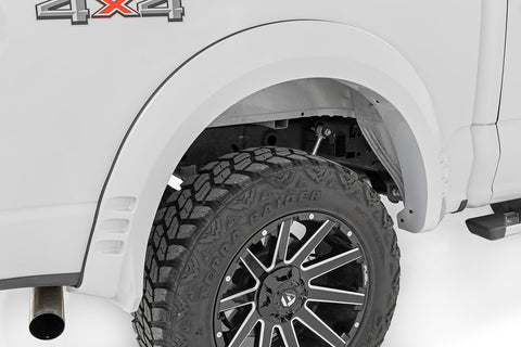 Protect your truck in style. Nothing turns heads like the style of your Ford F-150, so why not give it a little extra attitude with Rough Country's SF1 Fender Flares? Not only do they give your vehicle an awesome, simulated riveted look, but they also provide additional protection from rocks and mud. Plus, they offer maximum tire coverage and look great on lifted trucks. And best of all, they're easily paintable to color-match your truck. So, gear up and roll with style with Rough Country's SF1 Fender Flares!
