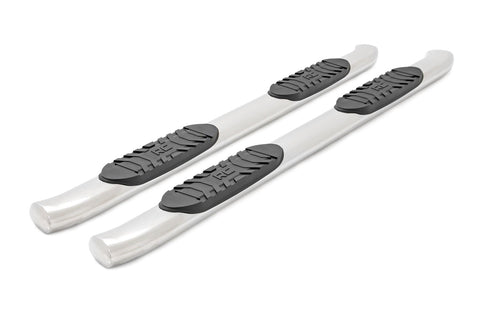 Gain easier access to your cab with the classic, OEM look of Rough Country'sOval Nerf Step Bars. These durable, steps side steps feature a comfortable, 4.5-inch wide stepping area built into a large, tubular nerf rail that mimics the look of the popular OEM oval step design.