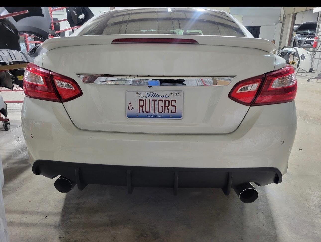 The splitter looks amazing on the Altima L33, giving it wings, the sporty coupe transforms into a fighter jet with a elegant sweep of aggression. Since the features of the product were based off the original body form, the design of this splitter also shares the same initial lines, making this splitter more stream line and fits tight to form underneath the chin.