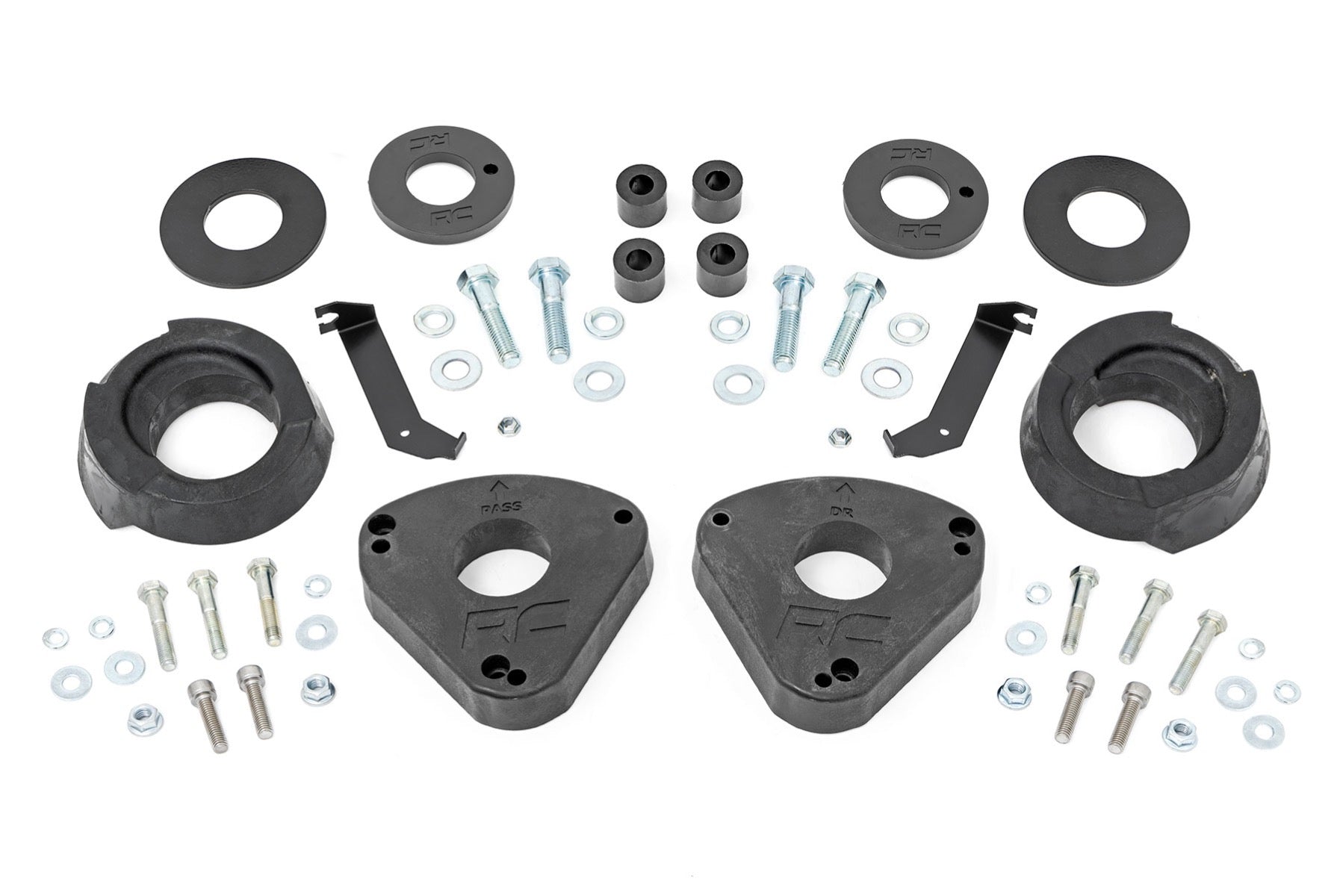 Innovative Design and Construction. This easy-to-install kit offers increased ground clearance and levels the vehicle from front to rear for a more aggressive look. Rough Country's 2in Lift Kit features front spacers and preloads made from a heavy-duty nylon construction that will stand up to the test of time. Also included are rear upper and lower coil spring spacers and all the necessary hardware for installation!