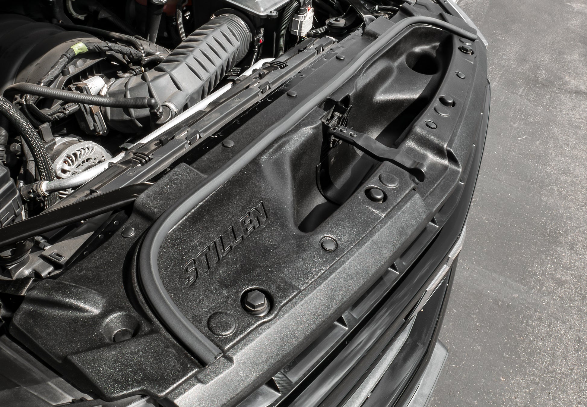 To solve the two problems with this otherwise fantastic design the design team at STILLEN began by creating a proper scoop. This scoop lowers the base of the radiator shroud to be in line with the top bar of the famous Chevrolet grille. This new design allows for the air to come directly into the intake system without being warmed by the radiator, or disrupted by the lattice type material in the radiator shroud. This design eliminates the pre-heating and the turbulence caused by the factory system.