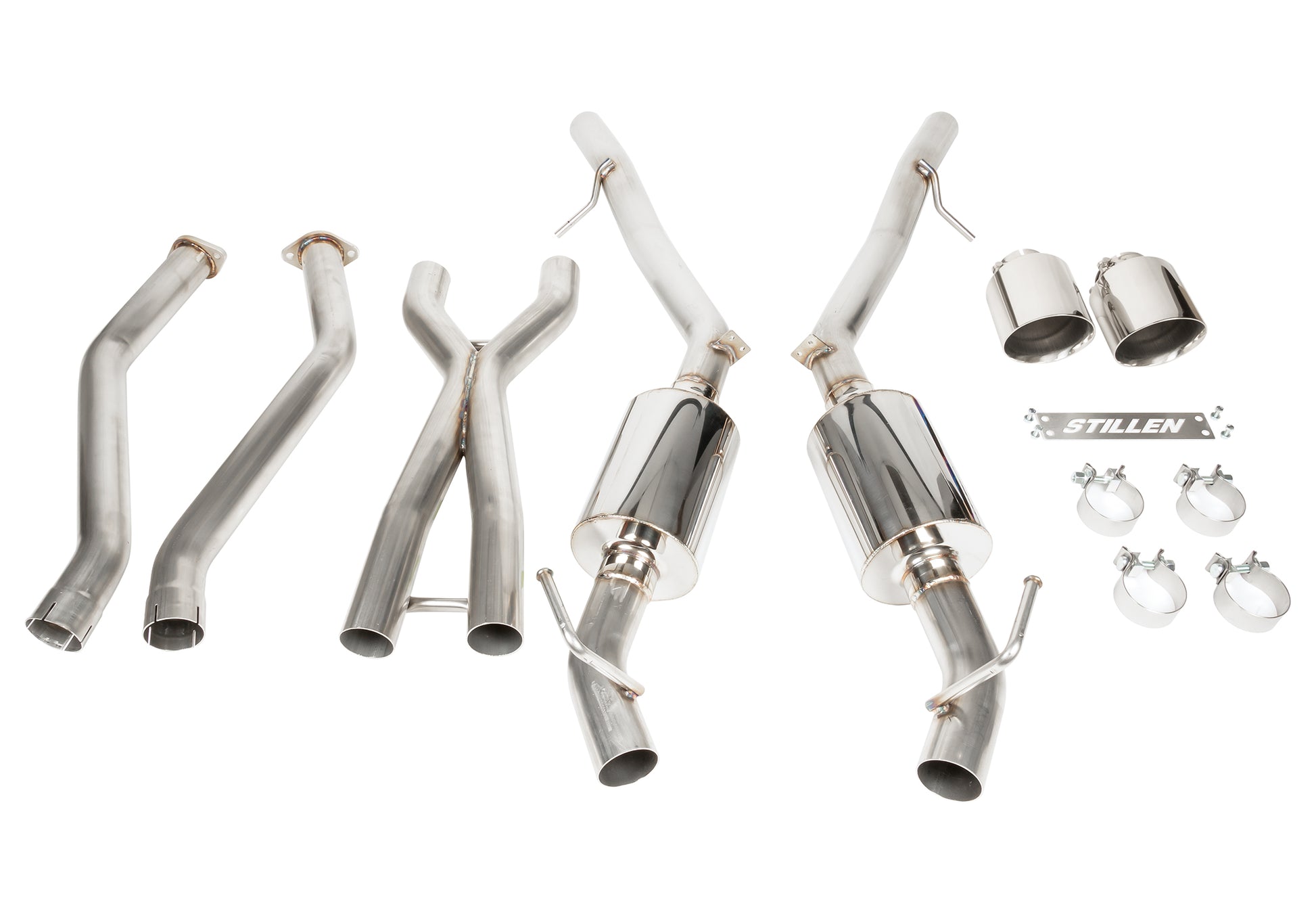To finish the exhaust system the customer has a choice of polished stainless, burnt stainless steel, or carbon fiber exhaust tips. Additionally the exhaust system is supported by a STILLEN branded cross-brace supporting and accentuating the exhaust system. We are extremely proud to offer this exhaust system and even more proud to continue our many decades of American manufacturing.