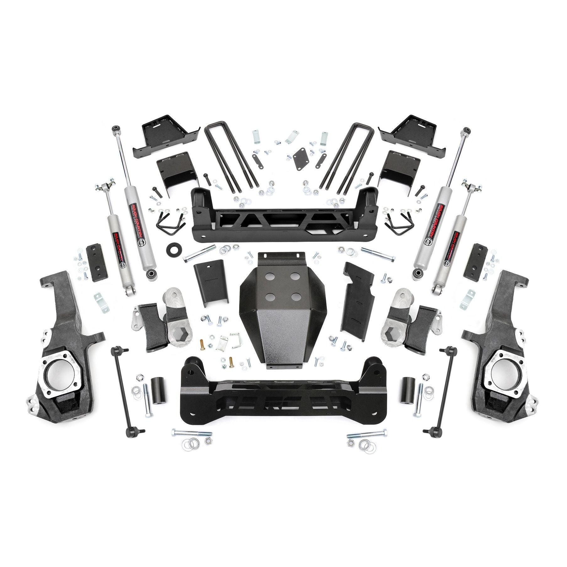 Give your HD a total transformation that complements the look of your new truck with Rough Country's Non-Torsion Drop 7-inch Suspension Lift Kit. This all-inclusive kit comes with everything you need to give your truck an aggressive look and enough increased ride height to run up to 37-inch tires with a non-torsion drop design that keeps everything looking flush and clean underneath. GM's 2020 HD 2500 received a major redesign. Once lifted, this truck transforms into an absolute monster that will keep you smiling every time you see it. While some kits on the market leave your torsion bars hanging in plain view, Rough Country's 7-inch lift features a non-torsion drop design that keeps everything tucked in and tidy, effectively giving you more ground clearance and a much cleaner look that fits in better with the overall design of your new truck. This kit also includes a set of front and rear crossmembers that are laser cut from durable US steel for a precise fit and feature an RC logo that displays prominently at the front of the vehicle. Each kit also features lifted knuckles, a beefy differential skid plate, and a set of Rough Country's N3 Nitrogen-charged shock absorbers that provide an incredibly smooth, factory-like ride quality both on and off-road. A set of rear anti-wrap rear blocks help prevent axle wrap even under the tremendous torque provided by this ton truck. Best of all, this kit features Rough Country's Lifetime Replacement Guarantee!
