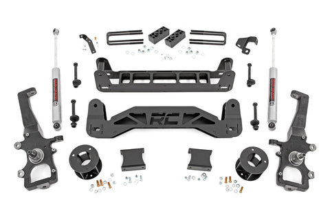 Transform your 2004-2008 Ford F-150 2WD with Rough Country's 4-inch Suspension Lift, giving it an aggressive new look and boosting off-road performance like never before. This all-inclusive kit is engineered to elevate your Ford, providing the perfect balance of strength and style on any trail.Achieve Enhanced Ride Height and Stability: With durable lifted knuckles and strut spacers, you'll gain the ride height needed to run up to 35-inch tires with proper wheel backspacing, all while maintaining Track Width Consistency for improved handling and stability.Upgrade Your vehicles Performance: This kit includes Cam Bolts, Brackets, Sway-Bar Drop Brackets, and Brake Line Brackets, ensuring all components stay at optimal angles for a factory-like ride. The 1/4-inch thick plate steel front and rear crossmember enhances your trucks strength and gives it a bold, stylish appearance.Includes Rough Country's N3 Rear Shocks: This kit comes complete with Rough Country's N3 rear shocks for enhanced ride quality and improved suspension performance. These premium shocks are engineered to deliver superior damping, increased stability, and all-terrain comfort, making your F-150 ready for any adventure right out of the box.Enjoy Peace of Mind: Backed by Rough Country's Limited Lifetime Replacement Warranty, you can hit the trails with confidence, knowing that your investment is covered for the long haul.