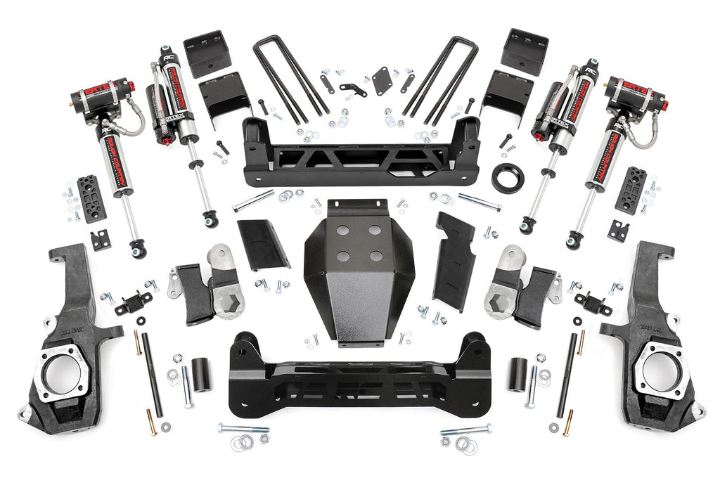 Command Attention from the Start: Right off the lot, the GM 2500/3500HD commands attention with its aggressive stance and sharp style. Rough Country's 7.5"; Suspension Lift was engineered to enhance this bold presence while keeping every factory advantage intact. Designed with a Non-Torsion Drop layout, this kit delivers improved ground clearance and handling without compromising your trucks factory angles or axle placement. Built with heavy-duty components, including 1/4"; thick steel crossmembers, 1/2"; thick NTD brackets, and a rugged skid plate, all laser-cut and finished in durable Hammer Black, this lift offers both strength and style. Installation is straightforward and non-invasive, requiring no drilling or differential modifications, so you can elevate your truck without altering its core mechanics.Ride Smoothly with Factory Precision: Experience a ride that feels as smooth as stock with features engineered to retain factory quality. The Non-Torsion Drop design preserves proper torsion bar placement and stock track width, keeping your wheels aligned and handling predictable. Factory axle positioning is maintained to prevent premature wear, while the kit requires no changes to your drivetrain or exhaust. Fully configurable shock options allow you to dial in your ideal ride, with nitrogen-charged N3 shocks, upgraded M1 or V2 monotubes, or premium Vertex reservoir shocks available to suit your driving style and terrain.Conquer Any Terrain with Confidence: Rough Country's 7.5"; Suspension Lift gives your third-generation Chevy/GMC 2500HD/3500HD the perfect balance of aggressive off-road capability and factory-like comfort, letting you tackle tough terrain with confidence and style.